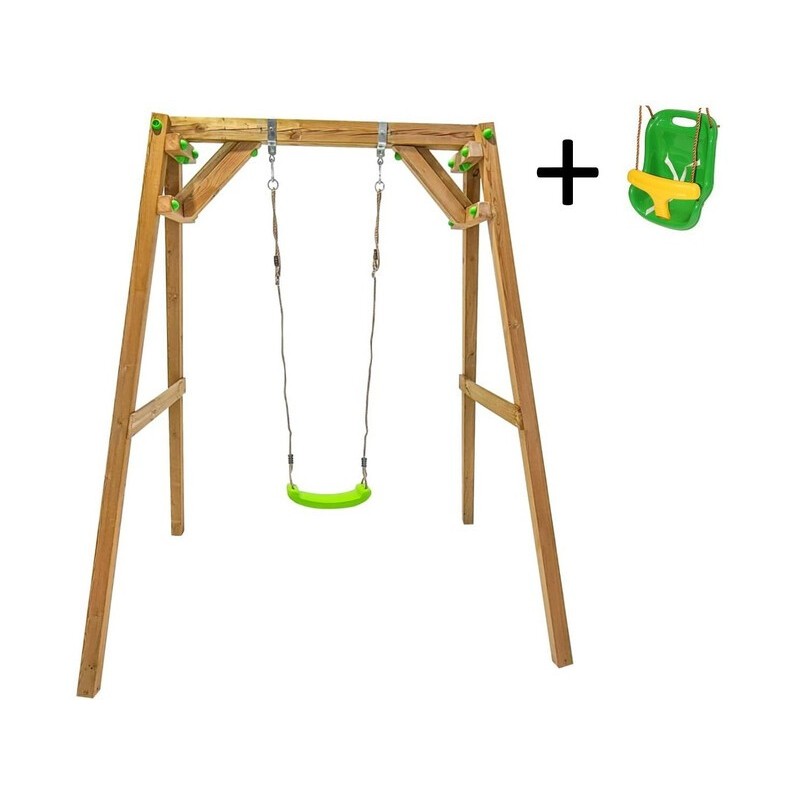Il est temps d'améliorer le jardin à la maison et de penser aux petits, profitez de tous les avantages de cette nouvelle balançoire individuelle carrée en bois Xylo Plus Baby Seat by Masgames. Une balançoire en bois de la meilleure qualité, avec un système de montage très simple et un résultat final très stable. La sécurité et le plaisir que vous avez toujours voulu pour les petits de la famille ! + Inclus : Balançoire individuelle Xylo en bois carré pour sa structure avec siège individuel plat en plastique vert, siège bébé en plastique vert, cordes synthétiques, ancrages au sol et vis pour le montage. Informations à prendre en compte concernant l'article : - Âge recommandé pour l'utilisation : entre 2 et 12 ans. - Poids maximal recommandé pour l'utilisation : 50 kg maximum. - Dimensions approximatives de la balançoire : 220 cm de haut x 220 cm de long x 265 cm de large. - Dimensions approximatives de la barre transversale : 150 cm de long. Informations complémentaires : + L'article est en bois naturel qui peut être affecté par les changements atmosphériques, se dilatant et se contractant selon le moment. Cela peut provoquer des fissures, qui ont été prises en compte lors du calcul de la résistance des différentes pièces, ce qui permet d'obtenir une plus grande flexibilité et de réduire la fragilité.