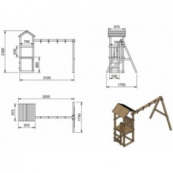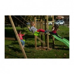 Donnez à votre jardin une touche unique grâce à cette impressionnante Aire de jeu en bois Carlit M avec balançoire double de Masgames, l'une des aires de jeu les plus complètes et les plus amusantes pour les petits. Fabriqué en bois naturel de la meilleure qualité, avec un montage simple et un résultat final de cinéma. Sa qualité, sa stabilité et ses accessoires font de cette aire de jeux un endroit de rêve pour les petits. + Inclus : aire de jeux en bois Carlit M avec une tour en bois traité, une plateforme, une échelle et une rampe de toboggan en plastique, une structure de balançoire double avec deux sièges individuels en plastique vert, des cordes synthétiques, des ancres de sommeil, des chevilles et des vis pour le montage. Informations à prendre en compte concernant l'article : - Âge recommandé pour le plaisir : de 3 à 12 ans. - Dimensions approximatives de l'aire de jeux : 239,5 cm de haut x 97,5 cm de long x 97 cm de large. - Dimensions approximatives de la tour : 239 cm de haut x 97,5 cm de long x 97 cm de large. - Dimensions approximatives de la diapositive : 144,2 cm de long x 38,9 cm de large. - La plate-forme de la tour est à une hauteur approximative de : 88,5 cm de haut. Informations complémentaires : + L'article est en bois naturel qui peut être affecté par les changements atmosphériques, se dilatant et se contractant selon le moment. Cela peut provoquer des fissures qui ont été prises en compte lors du calcul de la résistance de chacune des pièces, ce qui permet d'obtenir une plus grande flexibilité et de réduire la fragilité. + Terrain de jeux à usage privé.