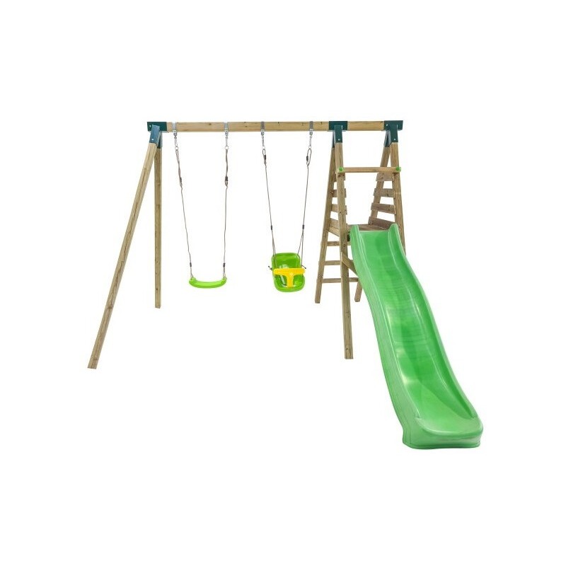 Obtenez cette amusante et grande Aire de jeu en bois Mauna Loa plus siège bébé de Masgames, une excellente idée si vous cherchez à surprendre les petits en complétant le jardin à la maison. Il s'agit d'un endroit très spécial pour ses matériaux de haute qualité, ainsi que pour toutes ses options de jeu et d'amusement. Vous pouvez ajouter un tuyau d'eau (non inclus) au toboggan pour transformer la rampe en toboggan aquatique. + Inclus : aire de jeux en bois carrée Mauna Loa avec une rampe de toboggan en plastique très solide, un raccord de tuyau sur la rampe, une structure en bois avec une balançoire double, un siège simple en plastique vert, un siège bébé en plastique vert, des cordes synthétiques pour les sièges, une plate-forme avec échelle, des ancrages, un jeu de coins et du matériel de montage. Informations à prendre en compte concernant l'article : - Âge recommandé pour en profiter : entre 2 et 12 ans. - Dimensions approximatives de l'aire de jeux : 230 cm de haut x 265 cm de long x 325 cm de large. - Hauteur de la plate-forme : Environ 120 cm de haut. - Dimensions approximatives des poteaux : 8,8 cm d'épaisseur. - Dimensions approximatives de la diapositive : 232 cm de long. Informations complémentaires : + L'article est en bois naturel qui peut être affecté par les changements atmosphériques, se dilatant et se contractant selon le moment. Cela peut provoquer des fissures qui ont été prises en compte lors du calcul de la résistance de chacune des pièces, ce qui permet d'obtenir une plus grande flexibilité et de réduire la fragilité. + Terrain de jeux à usage privé.