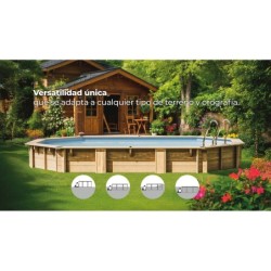 Profitez de tous les avantages d'une piscine en bois chez vous en vous procurant cette superbe et géniale piscine ovale en bois Bambu 2 de 535 x 335 x 136 cm de Gre. Une piscine haut de gamme, de plus de cinq mètres de long, entièrement équipée et d'un aspect très élégant, pour donner la touche rêvée au jardin de votre maison. Le pack comprend : - 1 piscine Bambu 2 en bois. - Une bâche en PVC d'une épaisseur de 60/100 et un traitement spécial contre les rayons UV. - Un système de filtration avec filtre à sable d'une capacité de 6 000 l/h et sable inclus. - Échelle en bois à l'extérieur et en acier inoxydable à l'intérieur. - Couverture de protection d'une épaisseur de 200 g/m². - Garnitures métalliques, doubles plages (14,5 cm x 2 = 29 cm), épaisseur 2,8 cm, rainure et languette 19 cm et épaisseur du bois 46 mm. Informations utiles sur l'article : - Âge recommandé pour l'utiliser : + 6 ans. - Dimensions approximatives de la piscine : 535 cm de long x 335 cm de large x 136 cm de haut. - Dimensions approximatives de l'intérieur de la piscine : 487 cm de long x 287 cm de large x 133 cm de haut (ligne de flottaison à 123 cm de haut). - Espace minimum nécessaire pour son installation : 545 cm de long x 435 cm de large x 15 cm de profondeur (3,56 m³). - Capacité approximative de la piscine : 15 400 litres. - Poids approximatif de la piscine sans eau : 1 381 kg. - Système Omegas, dalle en béton en option.
