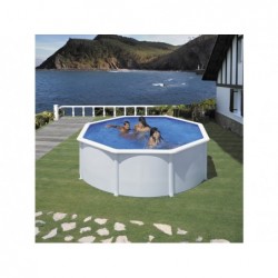 PISCINE CIRCULAIRE GRE FIDJI Haute qualité. Garantie et soutien technique. Description : - Dimensions : 550 x 120 cm (diamètre x hauteur) - Espace nécessaire pour le montage 600 x 600 cm - Capacité :approximative 24.944 litres - Parois en acier galvanisé - Liner PVC bleu 30/100 avec traitement anti-ultraviolet - Structure en acier polylaminé, phosphatées, imprimées et laquées - Protections moulées par injection - Orifice pour buse de refoulement et skimmer Inclus : - Échelle de sécurité - Sable compris - Épurateur à sable Silex qui permet de filtrer 4 m3 / heure