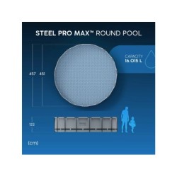 PISCINE CIRCULAIRE HORS SOL BESTWAY ref.56438 457x122 cm Fantastique pour le jardin ou la terrasse. Haute résistance Description: - Capacité :16.015 Litres (approx.) - Dimensions : 457 x 122 cm (diamètre x hauteur) Comprend : - Epurateur filtre à cartouche débit 3.028 Litres/Heure Réf. 58386 (Nécessite: filtres à cartouche Réf. 58094, inclus) - Liner TriTech, de 3 couches poliéster et membranes PVC, résistant aux produits chimiques et traité anti-UV - Echelle de sécurité 4 échelons - Tapis de sol - Bâche de protection ajustable - Rustines de réparation - DVD d'instructions