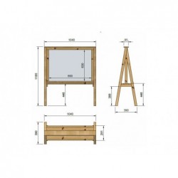 Surprenez les petits à la maison et laissez libre cours à leur imagination à l'extérieur avec cette ardoise d'extérieur en bois inspirante de Masgames Lapitz. Bien plus qu'un simple tableau noir, car il est fabriqué en bois naturel massif de haute qualité et résistant, il dispose d'un espace créatif à deux faces et complétera à merveille le jardin à la maison. + Inclus : Tableau noir Lapitz en bois naturel avec espace de dessin en méthacrylate transparent sur les deux côtés et base pour les accessoires. Informations à prendre en compte concernant l'article : - Âge recommandé pour le plaisir : 3 ans et plus. - Dimensions approximatives du tableau noir : 118,5 cm de haut x 104 cm de long x 39 cm de large. - Dimensions approximatives de l'espace de dessin : 63 cm de long x 86 cm de large. Informations complémentaires : + Les peintures et les pinceaux sont vendus séparément, ils ne sont pas inclus dans le pack. + Ardoise pour usage privé.