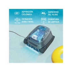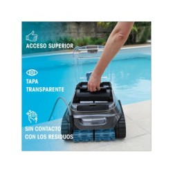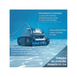 Si vous recherchez le nettoyage le plus efficace, rapide et simple pour votre piscine, voici le nouveau et performant Robot nettoyeur Zodiac CNX 2590 pour piscines enterrées et hors sol de Gre, Profitez de tous ses avantages dès le premier jour où il arrive chez vous. Le pack comprend : - 1 robot nettoyeur CNX 2590 de Zodiac avec trois moteurs protégés, traction par chenilles, transmission par engrenages, système d'arrêt automatique à la sortie de l'eau, système de plage, filtre d'une capacité de 4 litres avec couvercle transparent pour voir le filtre, conception légère et très résistante et unité de contrôle avec base. Informations utiles sur l'article : - Âge recommandé pour l'utiliser : + 16 ans. - Dimensions approximatives du robot nettoyeur de piscine : 30 cm de haut, 40 cm de large et 43 cm de profondeur. - Pour les piscines enterrées et surélevées jusqu'à 10 mètres de long et 5 mètres de large avec des parois rigides de toute forme, fonds et revêtements. - Zones de nettoyage : fond, parois et ligne d'eau. Cycles de nettoyage : 2 modes de nettoyage. - Poids approximatif de l'article : 8 kg. - Longueur approximative du câble : 15 m. - Niveau de filtration : 150/60 microns. - Couverture de nettoyage : 23 cm. - Surface filtrante : 1 066 cm².