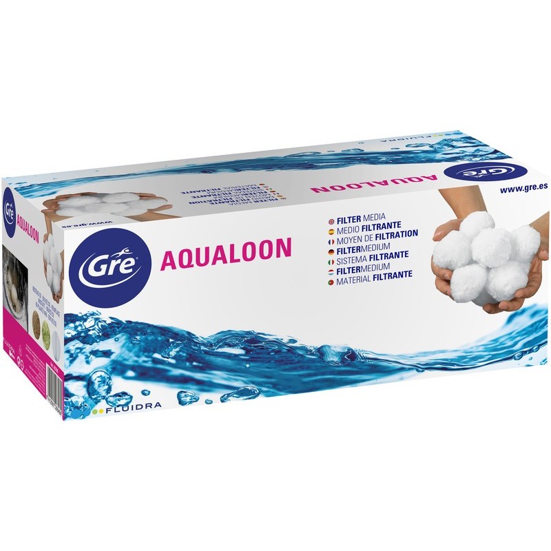 Aqualoon est nouveau moyen de filtration pour l'épurateur de votre piscine. L'Aqualoon AQ700 de Gre vous permet de filtrer tout de résidus jusqu' à 3 microns, il vous suffit de placer l'Aqualoon à l'intérieur de la cuve de l'épurateur de sable et le connecter à votre piscine pour qu'il commence à fonctionner Aqualoon est l'un des derniers sortis dans les moyens de filtration, 700 g du produit équivalent à 25 kg de sable. Réussissez à économiser en énergie, éviter tout risque d'avoir du sable dans la piscine, de plus est très facile à utiliser et à entretenir. 100% de polyéthylène recyclable. Comprend: 700g d'Aqualoon.
